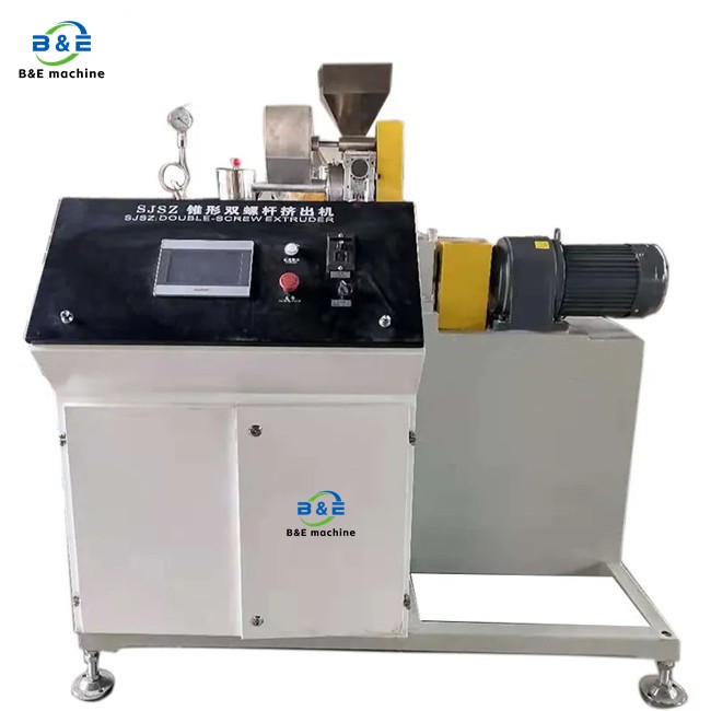 laboratory conical twin screw extruder is designed for pvc compounding and masterbatch making with an output capacity from 1kg/h to 90kg/h.